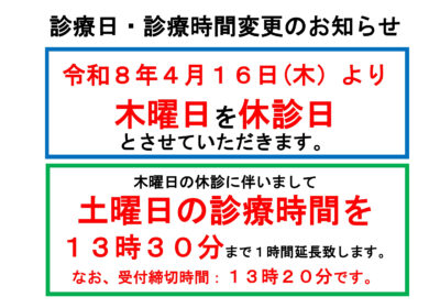 ※受付時間と診療時間が異なりますのでご注意ください。